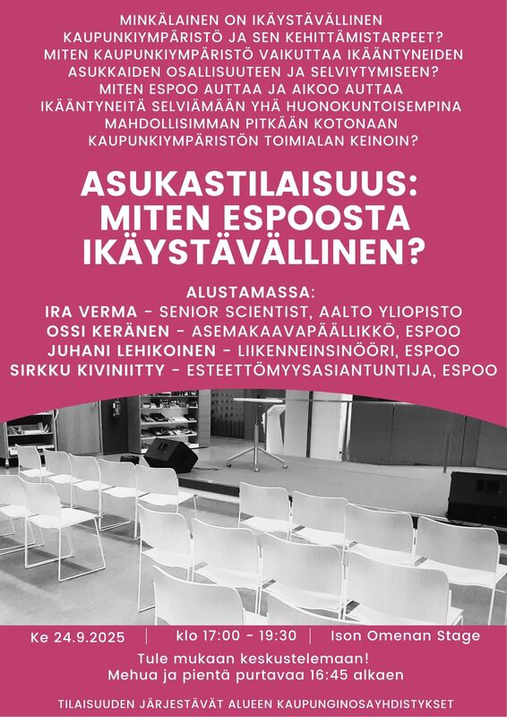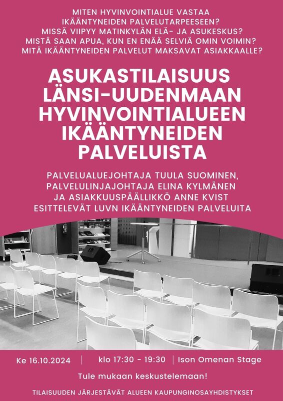 Aiheena on etsivä vanhustyö ja ikääntyneiden ajatuspaja.