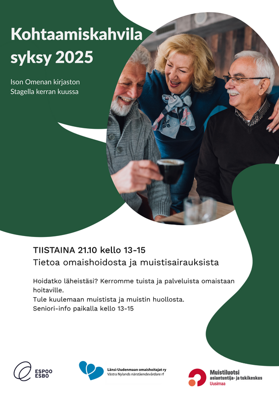 Kohtaamiskahvila on auki seuraavan kerran ensi viikon tiistaina 25.3. klo 12 - 14.